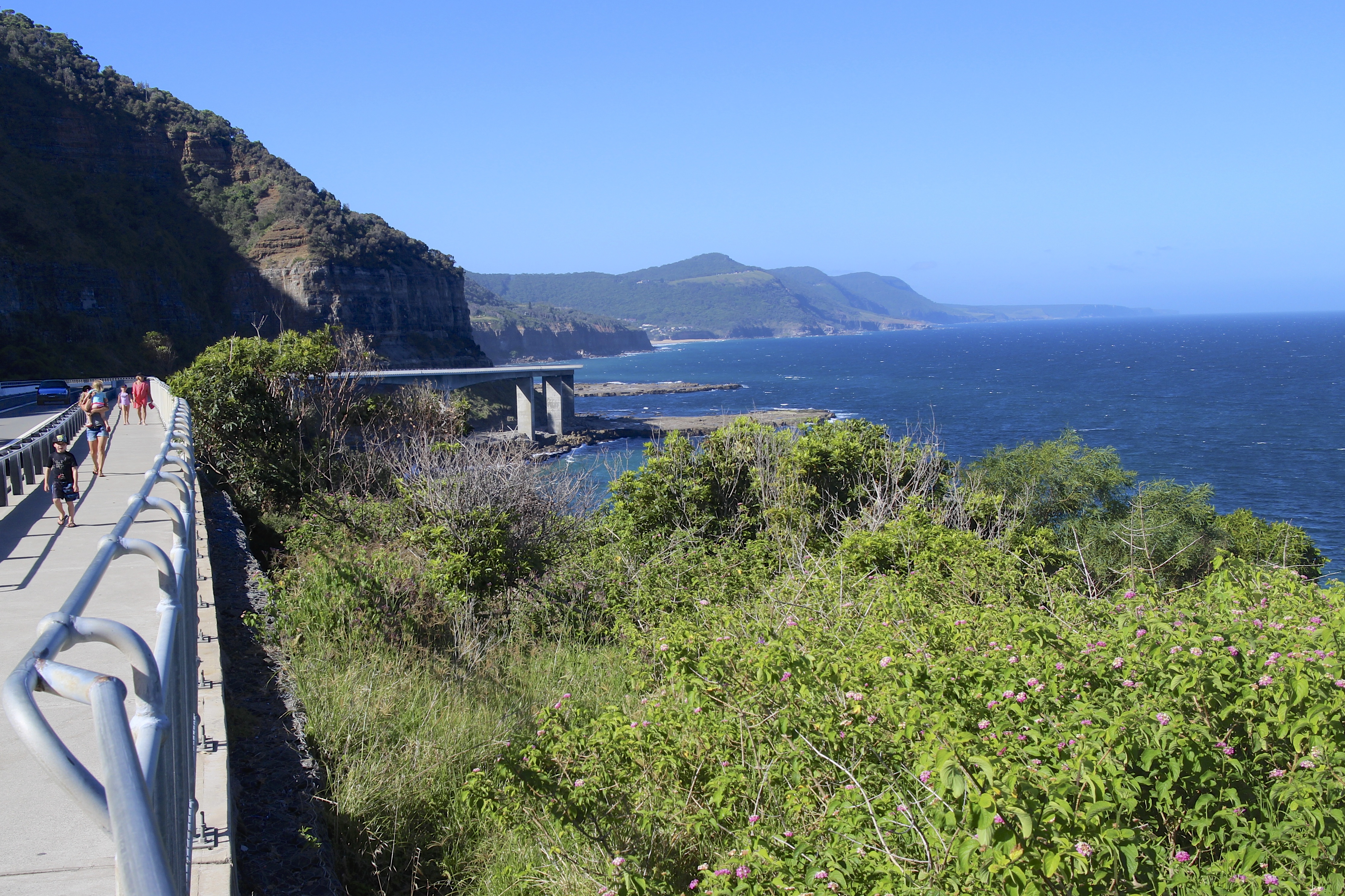 We drove along the AWARD WINNING (what award? … no idea, but they kept saying it was award winning!) Grand Pacific Drive. It was truly spectacular with some incredible views. My favorite part is the road/bridge that was built out over the ocean alongside the cliff – see it in the pic?