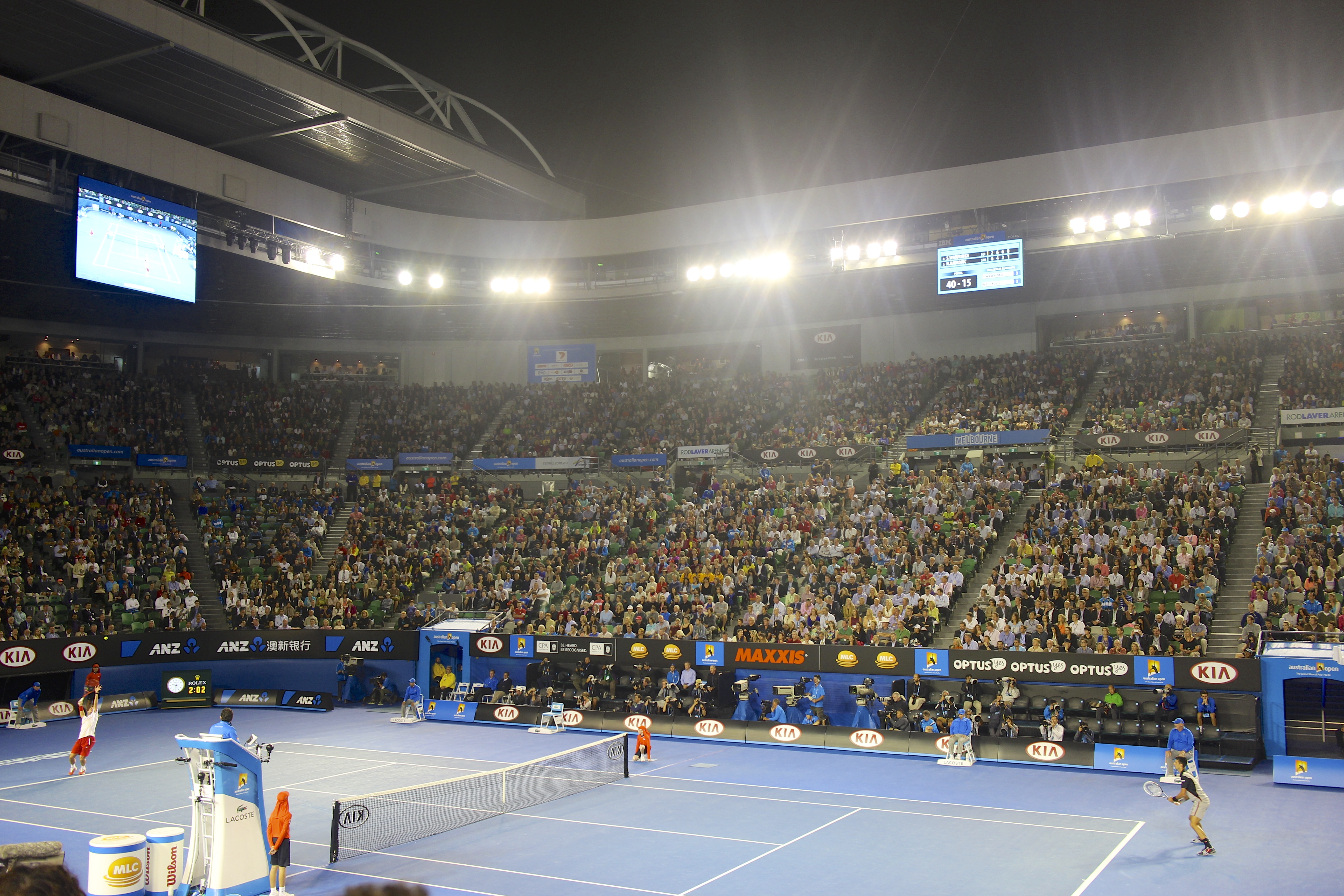 Defending champ Novak Djokovic against Stanislas Wawrinka. Men’s Semi Finals. Night match. The most exciting match of the tournament I would say.