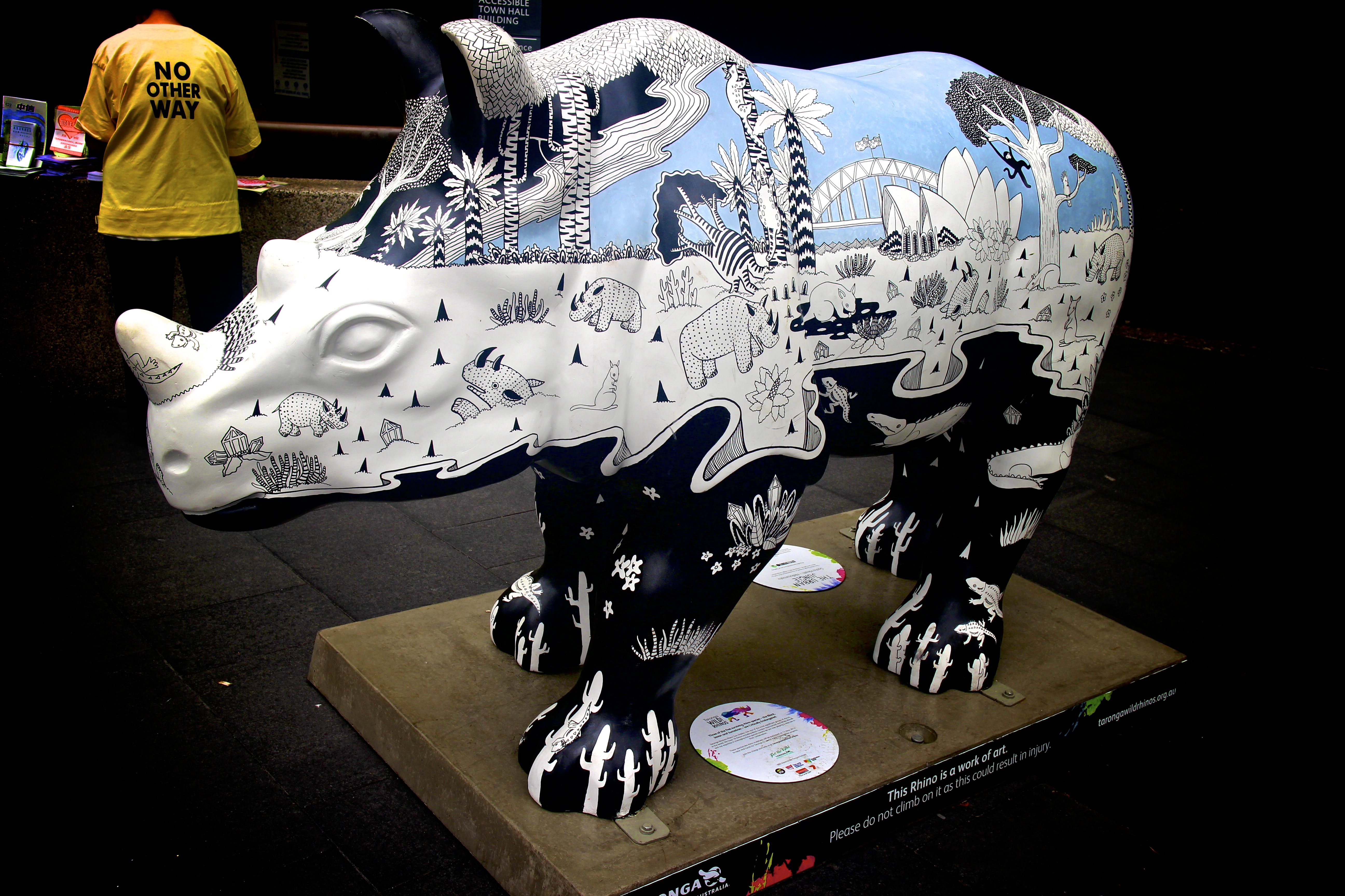 A huge herd of 125 wildly colourful rhino sculptures have charged into town to create a spectacular world class sculpture trail through the streets, parks and public spaces of Sydney, Dubbo and surrounds during February to April 2014 to help raise awareness of the critical plight facing rhinos through poaching and habitat loss.