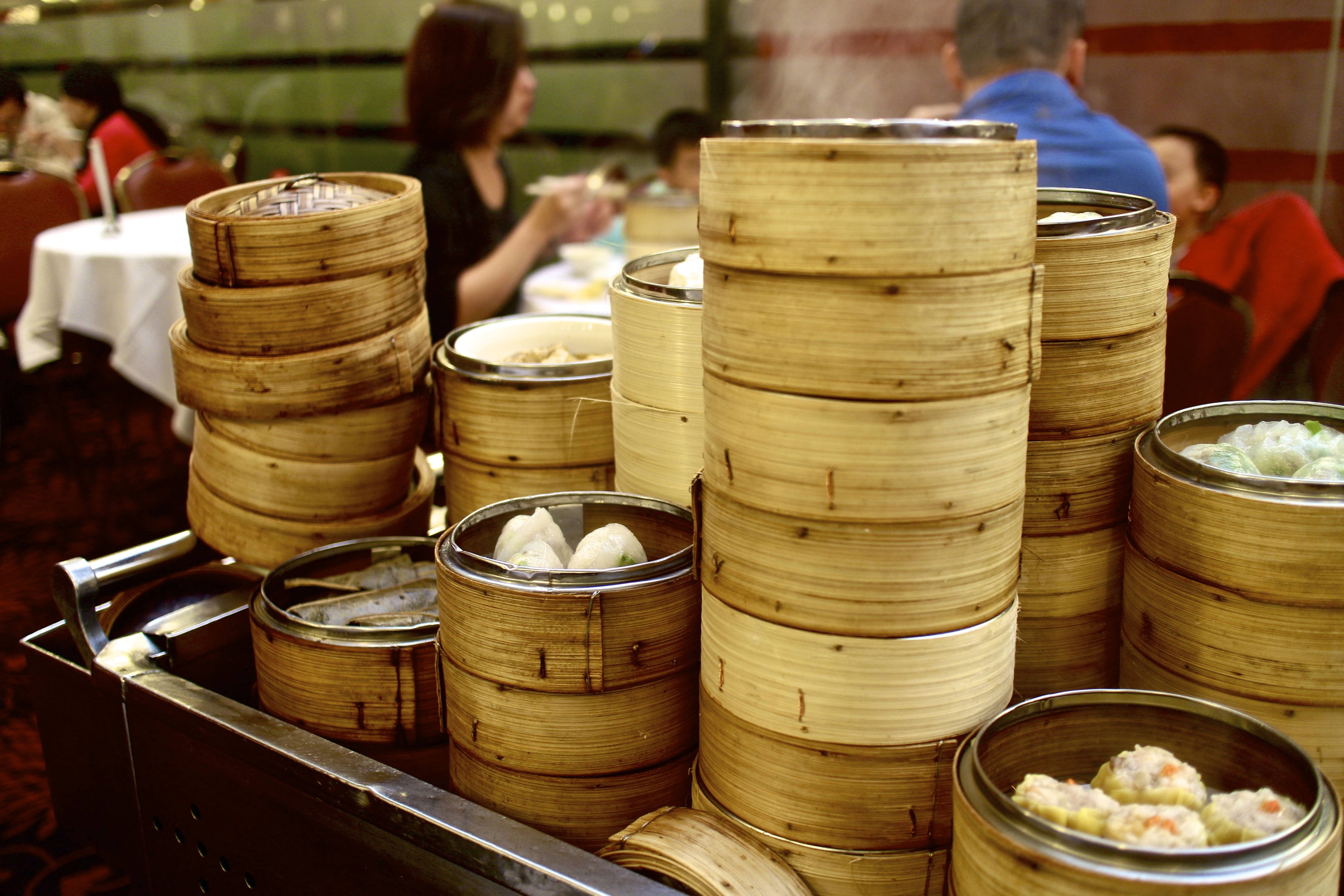 Yum Cha, which in Cantonese literally means “drink tea,” is a morning/afternoon tradition where dim sum is brought around on carts, mostly in steam baskets, and you choose what you want. Along with some delicious jasmine tea.