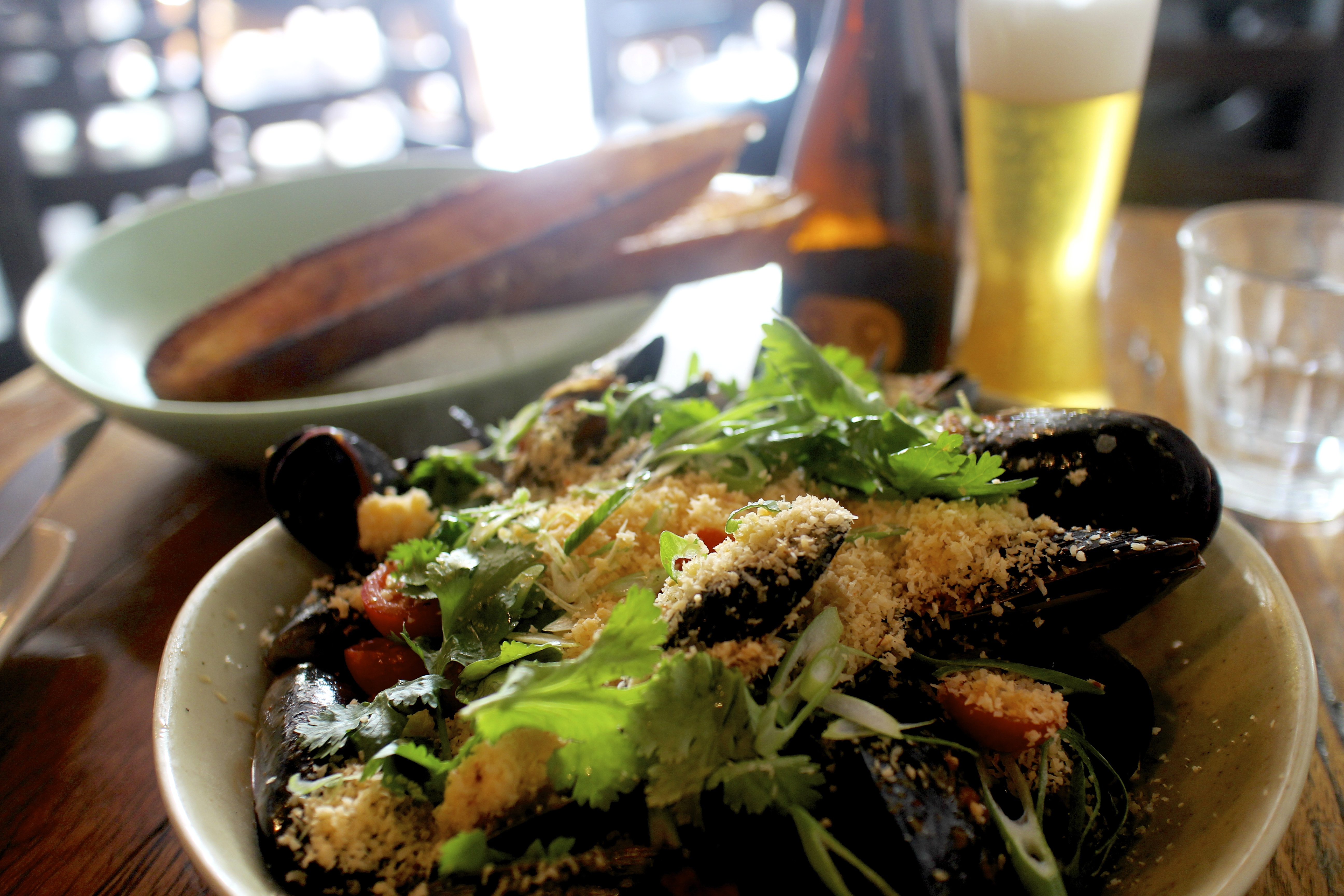 I had the steamed mussels with a herb and coconut sambal with chilli toast.