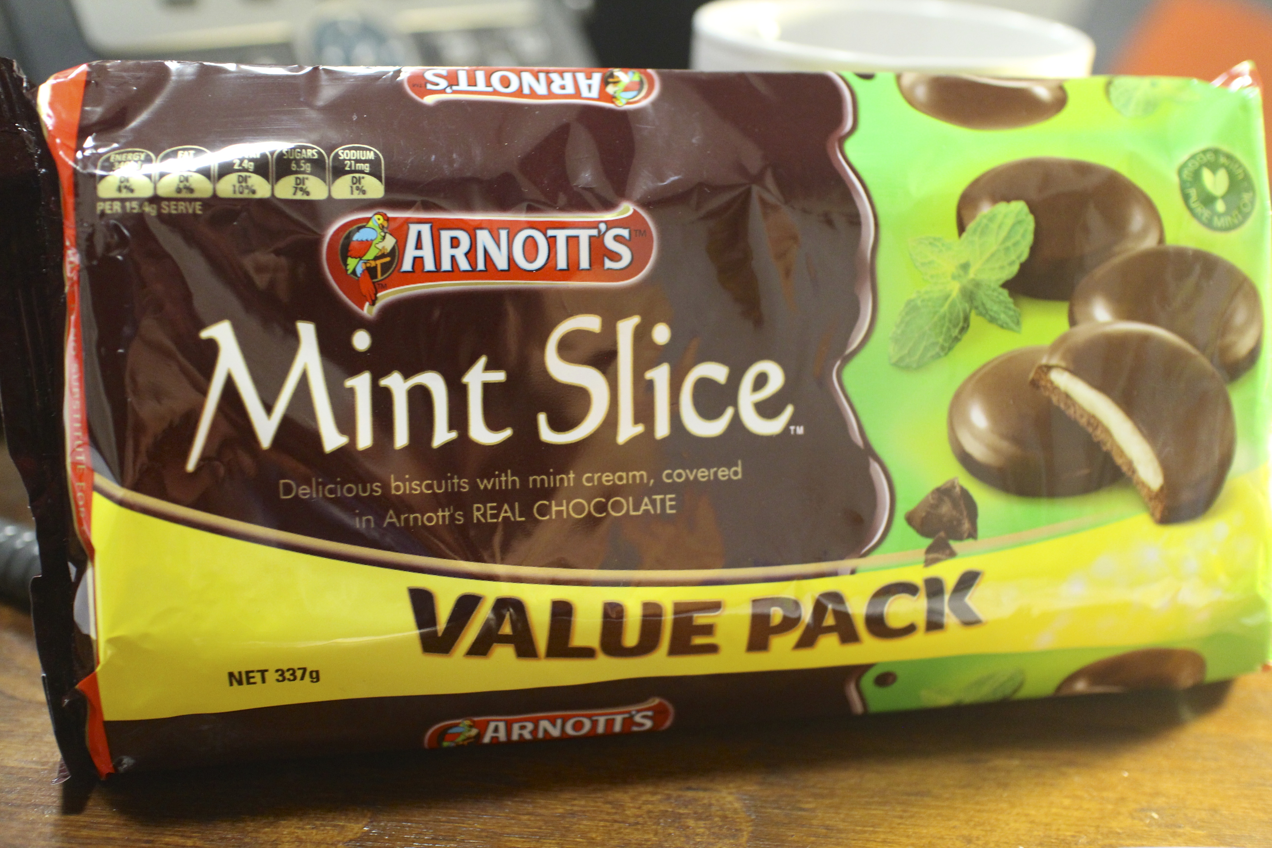 Day 316 July 18, 2014 by Randy Meyer Day 316 Friday 18 July 2014 Remember when I went on and on about Tim Tams? Best cookie/biscuits Oz has to offer? I lied. Arnott’s Mint Slices. O-M-G. It is like a Girl Scout’s Thin Mint meets an Oreo and then had a love child. THE BEST! Share this: Click to share on X (Opens in new window) X Click to share on Facebook (Opens in new window) Facebook Like Loading... Related
