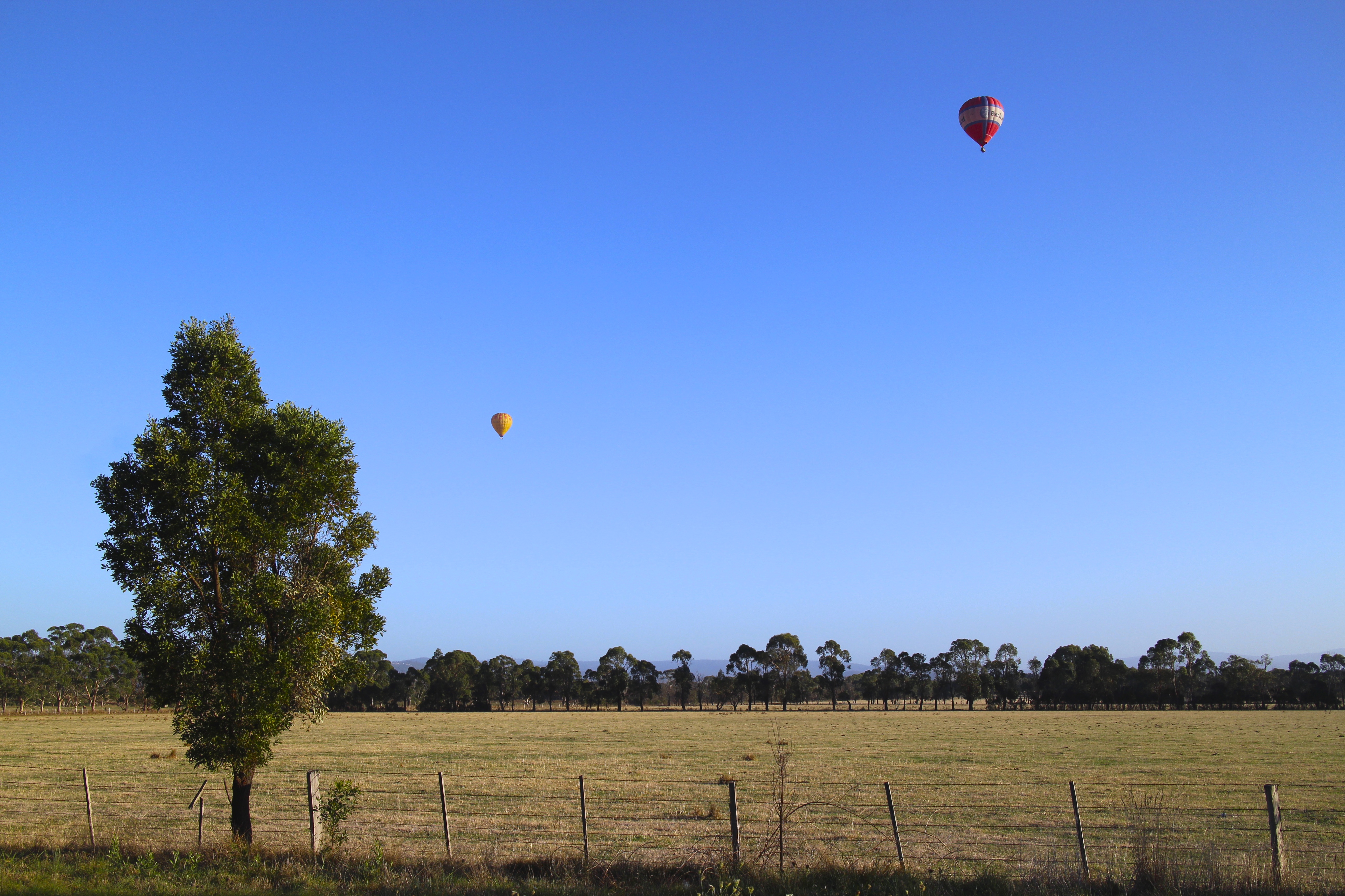 Day 552 March 11, 2015 by Randy Meyer Day 552 Wednesday 11 March 2015 A view of the countryside (and hot air balloons!) as we left the Yarra Valley yesterday. Work does get in the way sometimes, eh? Still a great little trip to the countryside. Share this: Click to share on X (Opens in new window) X Click to share on Facebook (Opens in new window) Facebook Like Loading... Related