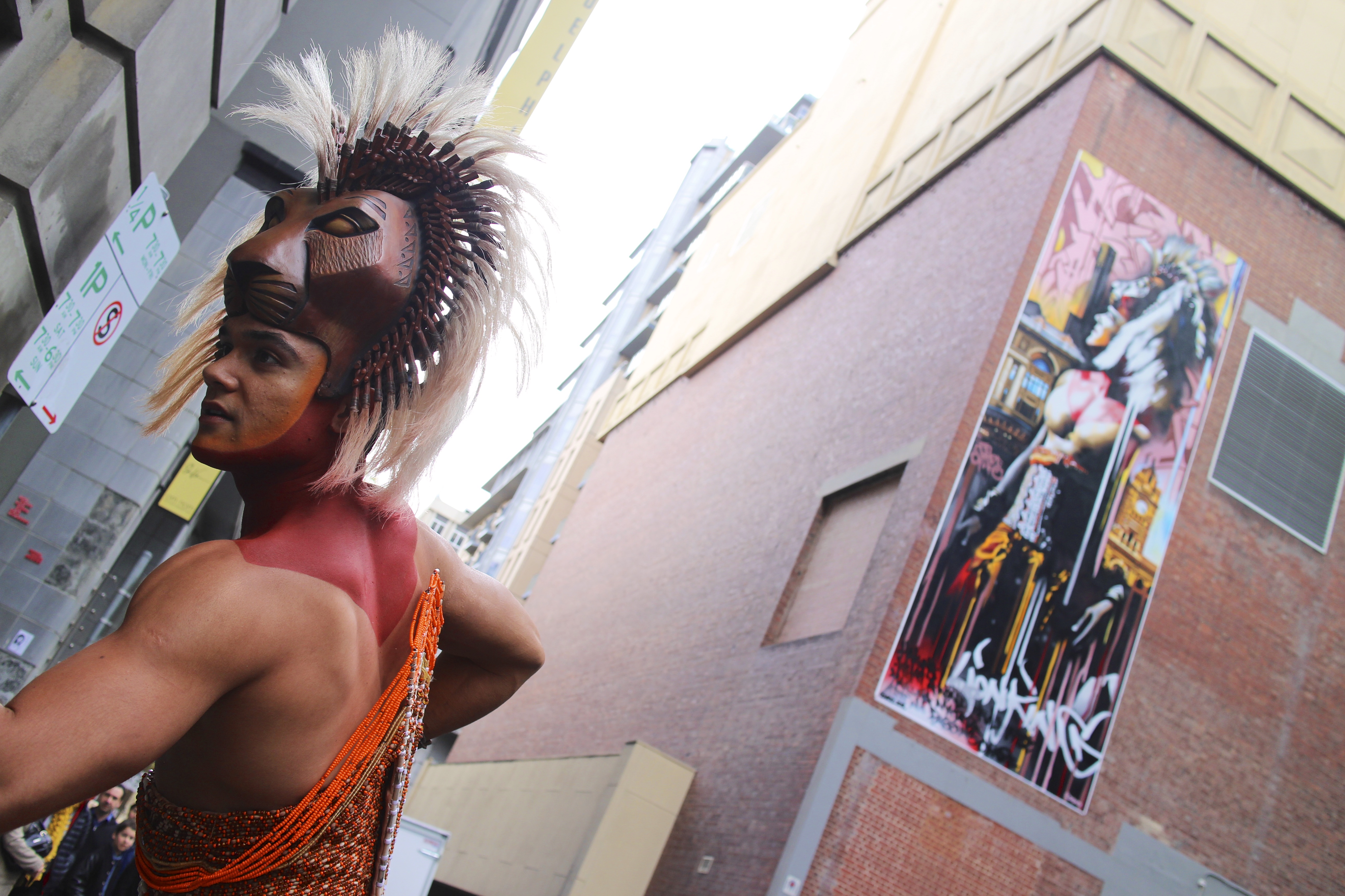 A local Melbourne artist did a massive installment on the side of the theatre that was inspired by Nick and The Lion King in Melbourne.