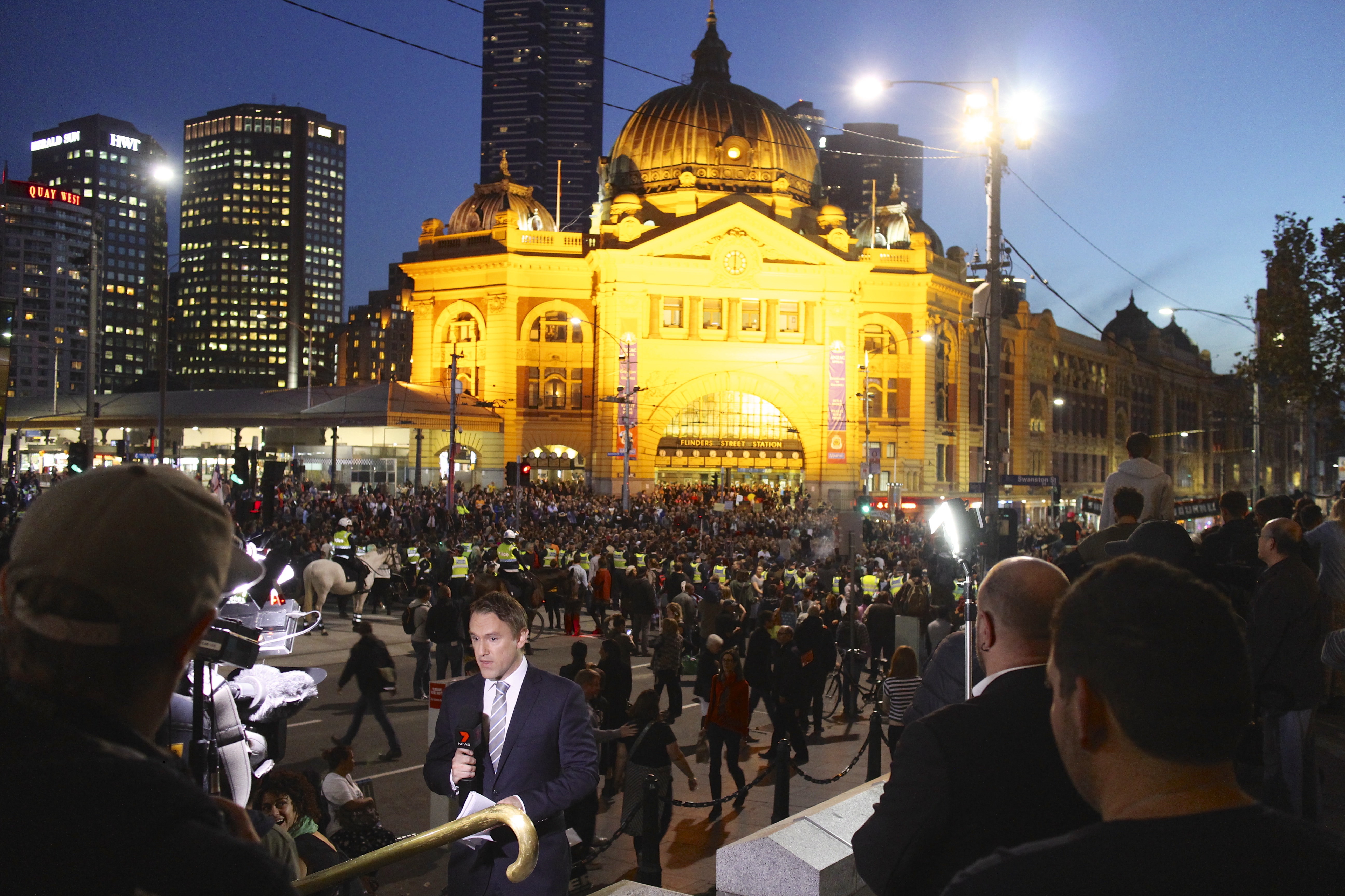 There is a big political debate happening in Australia currently and it is about the government taking control of more of the Aboriginal land by the closure of their communities – specifically in Western Australia. It’s pretty intense and Melbourne has been home to a few really large rallies on this. The aim of the protesters is to shut down traffic in Melbourne so they are heard. And of course this is in the heart of the CBD at Flinders Station, a mere block from the theatre.