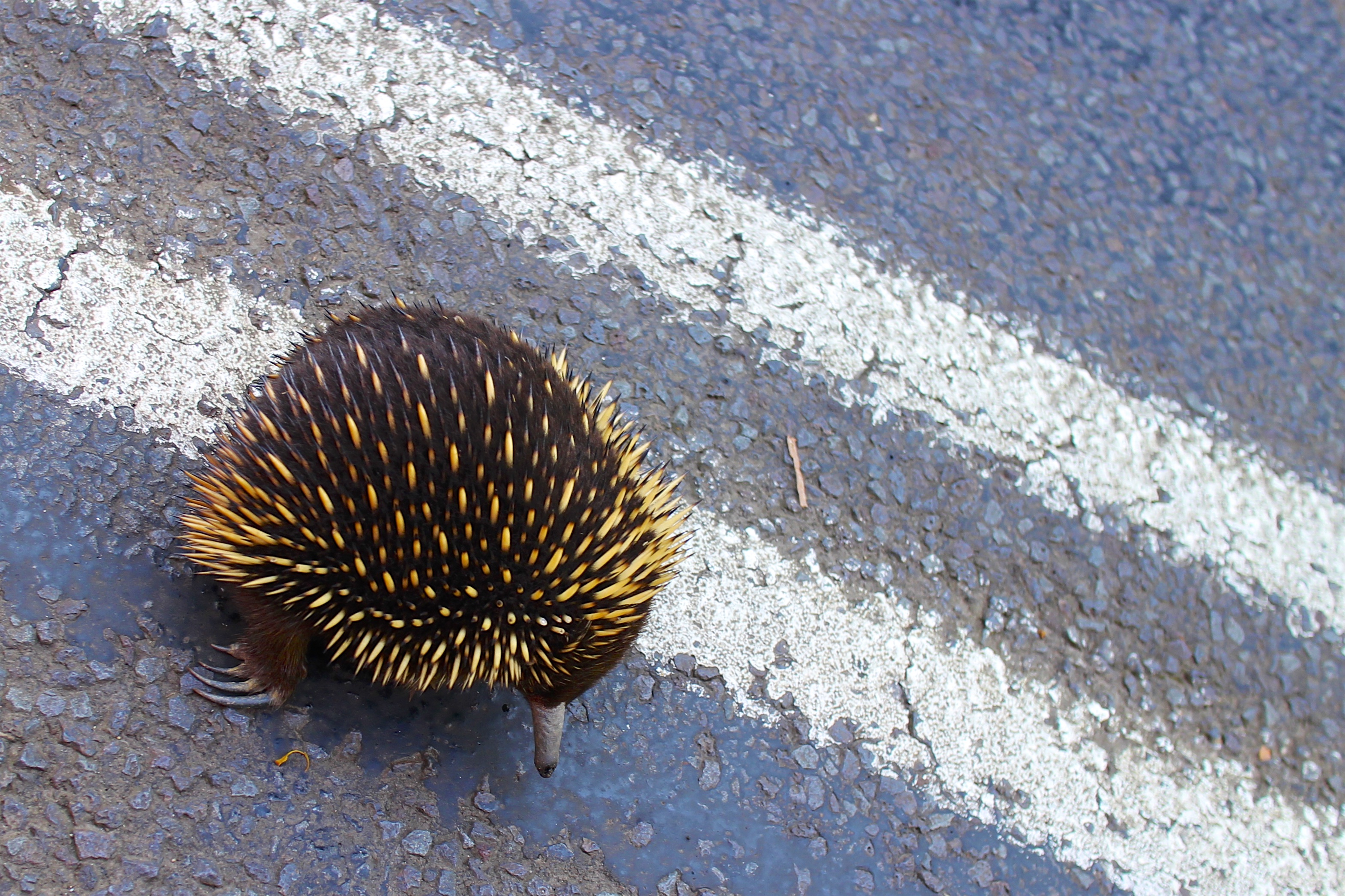 The echidna is the Aussie version of the porcupine I guess. Odd little animal. All out in the road by his lonesome!